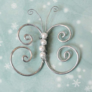 sedan nedåt och fäst samman ”vingarna”, trä på några vaxpärlor mot kroppen och